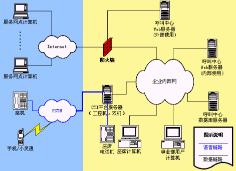 整個系統(tǒng)由呼叫中心平臺(接入層、支持層、實現(xiàn)層)與客戶服務平臺(行業(yè)應用層)兩大部分組成。呼叫中心作為整個系統(tǒng)的接入平臺,負責與客戶之間的交互工作。呼叫中心平臺需要處理的信息來源有:電話,傳真,信函,電子郵件。主要的工作有四個方面: