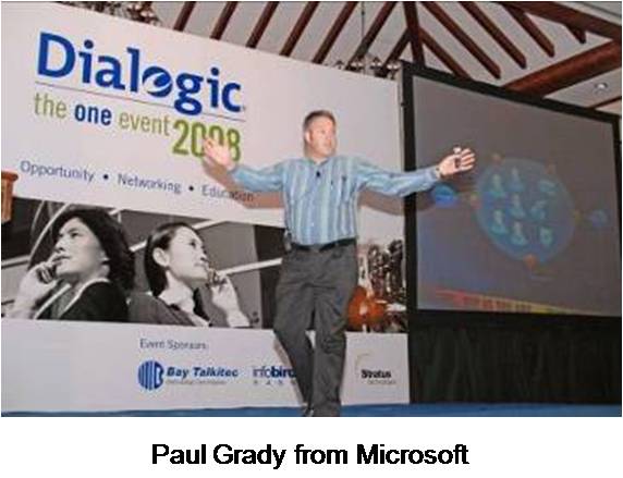 第二天上午,會(huì)議以Dialogic總裁兼CEO Nick Jensen強(qiáng)有力的演講開始,隨后是Dialogic執(zhí)行副總裁兼COO Tim Murray和Dialogic市場(chǎng)高級(jí)副總裁Jim Machi。 面向整個(gè)宴會(huì)廳的與會(huì)者,全天的會(huì)議包括了來自Dialogic產(chǎn)品線總監(jiān)James Rafferty和Dialogic企業(yè)產(chǎn)品線市場(chǎng)經(jīng)理Bud Walder等內(nèi)部演講者,和來自Yankee Group, PT. Excelcomindo Pratama 和Microsoft等外部演講者們激動(dòng)人心的演講。會(huì)議結(jié)束時(shí),由我們的合作伙伴Bay Talkitec贊助,有三個(gè)幸運(yùn)贏家贏得了iPod touch 16G,iPod nano 8G和4G。