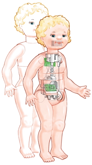 從機械上來說,夢想娃娃只是件簡單的藝術(shù)品。里面有三個馬達:一個用來走路,一個用來成長,一個用來動嘴。爬行和走路是由古怪的凸輪完成的。凸輪向玩具的某邊傾斜的時候玩具另一邊的手和腳就會向前移動。然后凸輪又向另一邊傾斜,這邊的手腳又向前移動,這樣,玩具就能夠爬行和走路了。