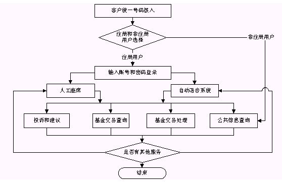 基金客戶服務(wù)呼叫中心系統(tǒng)的總體目標(biāo)是建立一個統(tǒng)一面向投資者的多媒體呼叫中心平臺,通過統(tǒng)一的特服號接入,實(shí)現(xiàn)統(tǒng)一的用戶服務(wù)界面,統(tǒng)一的熱線功能和統(tǒng)一的基金業(yè)務(wù)標(biāo)準(zhǔn),集中受理投資者對基金業(yè)務(wù)的需求,為投資者提供基金綜合性服務(wù)的無形窗口。系統(tǒng)以基金綜合業(yè)務(wù)系統(tǒng)為支撐,實(shí)現(xiàn)數(shù)據(jù)共享,完成業(yè)務(wù)咨詢、業(yè)務(wù)受理、業(yè)務(wù)查詢和客戶投訴等四大功能的一體化的處理與管理。