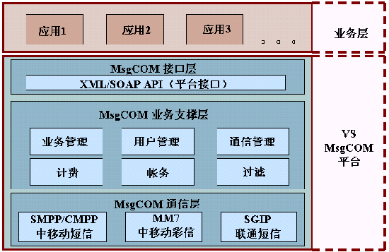 o 業(yè)務(wù)層:運(yùn)行在VS MsgCOM的各類業(yè)務(wù)應(yīng)用。