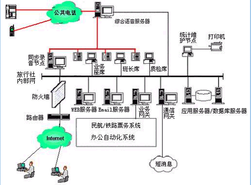 對(duì)于20個(gè)以下人工座席的中小型旅行社客戶服務(wù)中心系統(tǒng),則建議使用基于計(jì)算機(jī)語(yǔ)音板卡的方式,可以減少投資,同時(shí)具有良好的系統(tǒng)性能;對(duì)于大型的旅行社客戶服務(wù)中心系統(tǒng),可選用排隊(duì)交換機(jī)作為語(yǔ)音接入設(shè)備,以保障系統(tǒng)的高可靠性和穩(wěn)定性;大大提高了系統(tǒng)的適應(yīng)面。