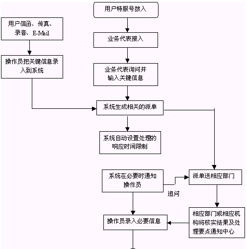 人民群眾打入電話后,當(dāng)系統(tǒng)的自動語音應(yīng)答子系統(tǒng)無法解決客戶問題時(shí),客戶可選擇人工服務(wù),由企業(yè)客戶服務(wù)代表直接接聽客戶電話,處理并解決客戶問題。此時(shí)客戶同座席話務(wù)人員直接溝通,并同時(shí)記錄下該客戶的聯(lián)系方式,將相關(guān)數(shù)據(jù)添加入系統(tǒng)數(shù)據(jù)庫;也可以在數(shù)據(jù)庫的支持下回答質(zhì)量監(jiān)督咨詢、投訴等?蛻粢部梢赃x擇自動語音服務(wù)方式,根據(jù)系統(tǒng)的語音提示輸入按鍵,選擇類別,將自己的投訴和建議以及自己的聯(lián)系方式信息以留言錄音的方式保存在系統(tǒng)中。系統(tǒng)同時(shí)還支持自動傳真方式,客戶可以通過傳真機(jī)進(jìn)入本系統(tǒng),通過按鍵選擇傳真方式,將自己的意見建議等的文本內(nèi)容傳真給系統(tǒng),系統(tǒng)自動接受并存入數(shù)據(jù)庫。