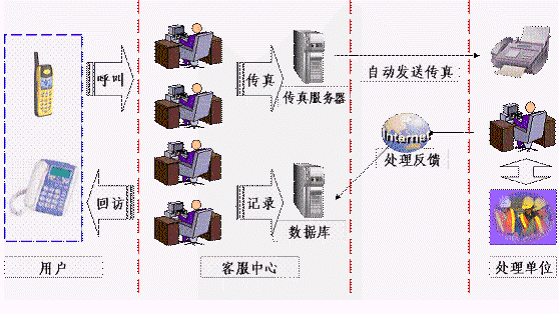 本呼叫中心系統(tǒng)可通過(guò)電話,手機(jī),傳真等各種接入手段接受用戶的投訴,并及時(shí)處理或通過(guò)特定的通信渠道轉(zhuǎn)交給處理部門處理,同時(shí)可根據(jù)處理的情況及時(shí)回復(fù)用戶,做到服務(wù)的閉環(huán)。