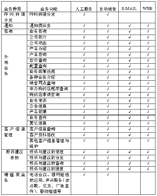 F、通知類業(yè)務(wù):對某些特定的對象通過自動(dòng)呼出或人工呼出進(jìn)行通知,實(shí)現(xiàn)政策法規(guī)、專題的通知,方式可以是電話、傳真、eMail、短消息、網(wǎng)站等;