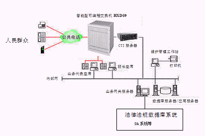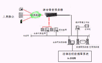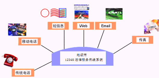 居民利用電話、傳真、手機(jī)等撥打某一特服號(hào)碼(如12348)進(jìn)入地級(jí)市法律服務(wù)熱線系統(tǒng),本系統(tǒng)依托地級(jí)市司法行政部門/法院各類業(yè)務(wù)技術(shù)支持系統(tǒng)和網(wǎng)絡(luò)系統(tǒng),通過人工受理或自動(dòng)語音服務(wù)等方式全天24小時(shí)不間斷地為人民群眾提供各種法律服務(wù);形成了對外服務(wù)于百姓的無形窗口,對內(nèi)管理、分析、決策系統(tǒng)相結(jié)合的多媒體呼叫中心。