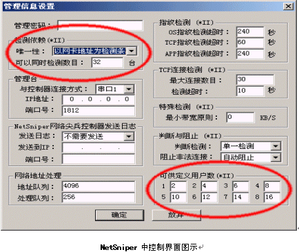 由上圖我們可以看出,NetSniper可以方便地根據(jù)用戶IP地址或MAC地址控制同一網(wǎng)口用戶數(shù)量,用戶數(shù)量控制可以分八級(jí),包括單一用戶和無限用戶的缺省設(shè)置,一共十級(jí)。用戶數(shù)量按照按自己的意愿定義每一級(jí)用戶可以管理計(jì)算機(jī)的數(shù)量,準(zhǔn)確,靈活,是運(yùn)營(yíng)商增加接入服務(wù)方式的強(qiáng)大基礎(chǔ)。