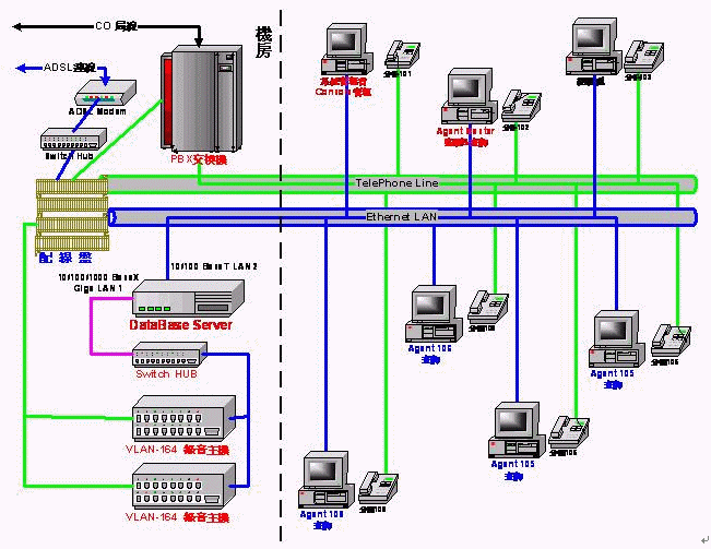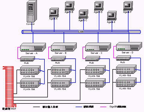 - 系統(tǒng)主要包括二大主機并由網絡聯(lián)機(TCP/IP協(xié)議)作為彼此與遠程的溝通橋梁。一是錄音接口主機(VLAN-164)具備模擬輸入音源的匹配接口、音源數(shù)字化、網絡聯(lián)機輸出。一是數(shù)據庫服務器(DataBase