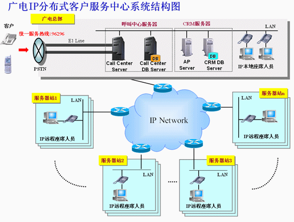 充分利用廣電已有的優(yōu)秀的寬帶網(wǎng)絡(luò)條件,建立IP分布式服務(wù)模式,以城市的各廣電服務(wù)站為單位,實(shí)現(xiàn)本服務(wù)站覆蓋范圍內(nèi)的用戶優(yōu)先由本服務(wù)站座席人員服務(wù)的本地化服務(wù),一方面解決了總部集中服務(wù)的場地、交通、管理等方面的壓力,另一方面本地化服務(wù)也加快了交流的有效性,提高了解決問題的效率,體現(xiàn)出廣電差異化服務(wù)的特色;