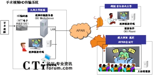 CTI論壇(ctiforum)2月22日消息(記者 張塵):近日沖電氣工業(yè)株式會(huì)社(OKI)子公司沖網(wǎng)絡(luò)株式會(huì)社和日本九州大學(xué)(校長(zhǎng):有川節(jié)夫,地址:日本福岡縣福岡市)一起成功完成向國外轉(zhuǎn)播HD(注1)手術(shù)視頻的測(cè)試。此項(xiàng)測(cè)試是2月8日至10日在澳大利亞悉尼召開的“第29屆Asia-Pacific