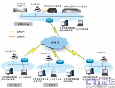 如上圖所示,攀鋼集團(tuán)視頻會議系統(tǒng)基于IP的組網(wǎng),MCU采用RADVISION VIAIP100綜合視訊交換平臺,終端采用SONY