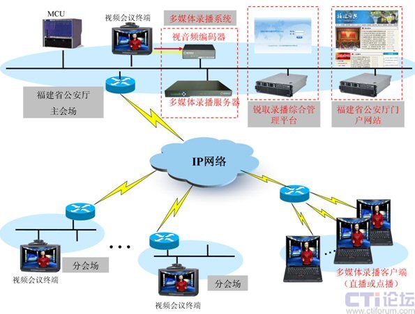 本次采購的銳取多媒體錄播系統(tǒng)不僅能夠與省公安廳已有的視頻會議系統(tǒng)配合進行視頻會議的錄制、直播、點播,還能與視頻會議系統(tǒng)配合實現(xiàn)跨地域的“在線訪談”實時直播、錄制和點播。沒有參加會議或者是沒能收看直播的用戶都能夠在事后點播再收看,避免了專用設(shè)備功能單一的缺點,真正的一機多用。