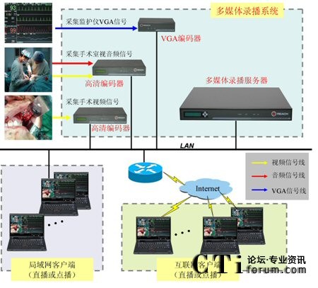 傳統(tǒng)的手術示教是使用攝像機記錄的,記錄完畢后要進行編輯處理后才能做為手術示教的視頻檔案,回放時一般在專門的多媒體教室使用大屏幕投影或者電視觀看,學生如需要再次觀看視頻還需要到多媒體教室,不便于手術示教視頻的學習和傳播。