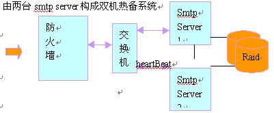2. 2個smtp server可以構成負載均衡,同時構成雙機熱備份,正常情況下,smtp流量平均分配到兩臺smtp server;一旦其中一臺出現故障,另外一臺將自動接管smtp服務。