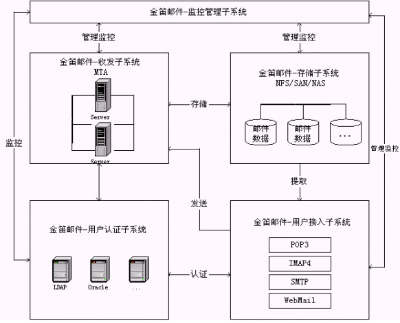 金笛郵件系統五大功能模塊邏輯關系圖