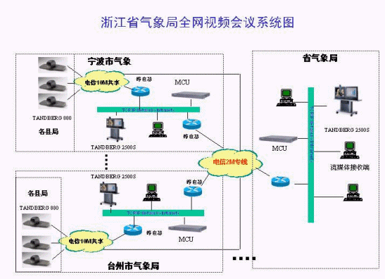 浙江省氣象局為了響應(yīng)全國氣象系統(tǒng)的號召,充分利用自己網(wǎng)絡(luò)資源的優(yōu)勢,于2003年初經(jīng)過系統(tǒng)方案的征集、產(chǎn)品的反復(fù)測試,最終確定了由華夏科技代理的挪威TANDBERG的視頻終端,并于2003年9月份簽訂了一期采購合同,共計(jì)40多套視頻終端。