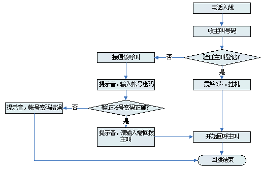 對接入系統(tǒng)的電話均進(jìn)行主叫識別,如果主叫沒有注冊,系統(tǒng)語音提示后,主動釋放電話 |