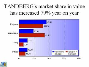 TANDBERG視頻會議終端產(chǎn)品是挪威泰德集團(TANDBERG Group)下屬視訊公司(TANDBERG Telecom)的定位于高端市場的視頻會議系統(tǒng)終端產(chǎn)品,亦就是說,TANDBERG終端是挪威泰德公司專為出錢要買最好終端的客戶們設(shè)計、生產(chǎn)和制造的。TANDBERG未在挪威以外設(shè)立任何分廠,每臺設(shè)備必須經(jīng)過挪威工程師嚴格檢驗,從而保證每臺設(shè)備的最高可靠性(當然海關(guān)進口成本要高一些了)。TANDBERG全系列產(chǎn)品均采用泰德自己研發(fā)的專用視頻芯片,而不是采用第三方芯片加以集成,從而保證了從高端T8000至低端T500的所有產(chǎn)品性能表現(xiàn)均很優(yōu)秀。