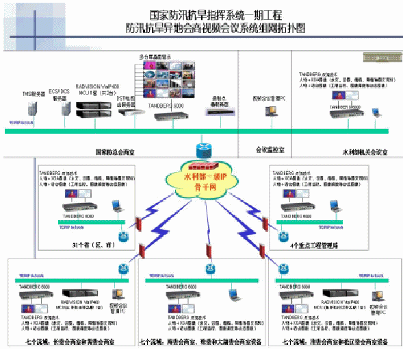 "工欲善其事,必先利其器"。為了推動(dòng)國家"金水工程"對信息化的要求,2003年,水利部就開始著手籌建國家防汛抗旱指揮視頻會(huì)議系統(tǒng)。按照當(dāng)初的項(xiàng)目規(guī)劃,這次視頻會(huì)議系統(tǒng)的建設(shè)主要包括水利部、7個(gè)流域機(jī)構(gòu)、31個(gè)省(區(qū)、市)和4個(gè)重點(diǎn)工程局等43個(gè)單位的44個(gè)節(jié)點(diǎn)。