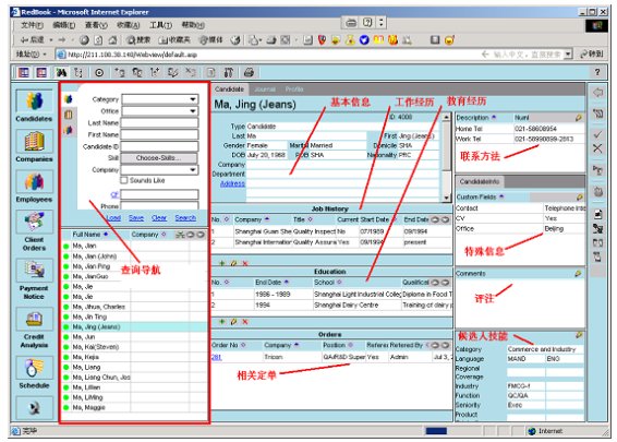 融博獵頭業(yè)務(wù)管理系統(tǒng)已經(jīng)被某著名的獵頭公司正式上線,該系統(tǒng)同時在北京、上海和香港公司使用。根椐使用客戶反映,該系統(tǒng)功能強(qiáng)大、操作靈活、速度快,基本覆蓋了獵頭業(yè)務(wù)的全部內(nèi)容;各種業(yè)務(wù)流程規(guī)范流暢、各類統(tǒng)計報表清晰準(zhǔn)確,大大地提高了工作效率;該系統(tǒng)與目前國際先進(jìn)的獵頭公司所使用的系統(tǒng)相比,也處于比較領(lǐng)先的水平。下面將對產(chǎn)品的特點及相關(guān)的功能模塊進(jìn)行描述。