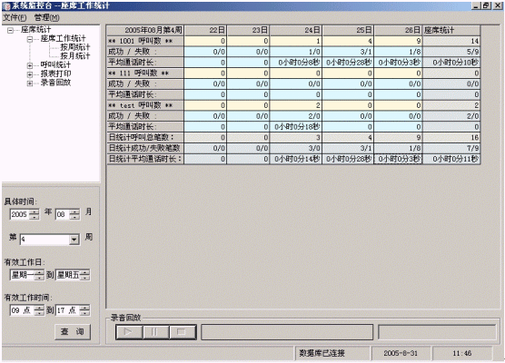 - 坐席功能,坐席人員通過(guò)電腦鼠標(biāo)操作,取新客戶資料,點(diǎn)擊撥號(hào),同時(shí),用鼠標(biāo)操作記錄撥號(hào)過(guò)程和通話過(guò)程的一些設(shè)置(撥號(hào)成功、忙線、無(wú)人接、客戶反饋信息等)。坐席電腦將分類顯示忙線電話列表、無(wú)人接電話列表、感興趣客戶列表等信息,以便做下一輪撥號(hào)參考。