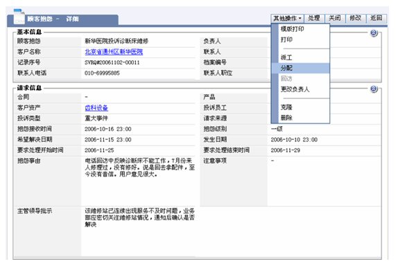 醫(yī)療設備的維修以現(xiàn)場服務為主,在接到客戶服務請求到派工的流程,依靠紙張遠遠達不到高效的要求,維修情況的記錄已僅僅是事后的文字記錄,通常需要層層上報,更不具備匯總和統(tǒng)計分析的功能,作為領導不能適時監(jiān)控和管理在外的維修服務工程師。