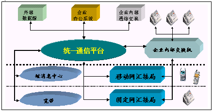 統(tǒng)一通信平臺引入外部各種通信資源,尤其是移動網(wǎng)絡和寬帶資源,整合企業(yè)內(nèi)部網(wǎng)絡資源和業(yè)務,開發(fā)企業(yè)應用服務,推動企業(yè)信息化建設。從而簡化企業(yè)內(nèi)部通信,提高企業(yè)通信效率,實現(xiàn)無紙化辦公降低企業(yè)的通信費用改善企業(yè)服務形象,提高企業(yè)與客戶之間的關系。