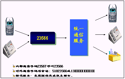 鐵路內(nèi)部員工可以統(tǒng)一所有的通信工具,只使用一個號碼,一次呼叫便可以完成通信,使通信更加簡單、可靠?梢詫崿F(xiàn)換機換網(wǎng)不換號,用戶獲得一個終身的聯(lián)系號碼,用戶無論更換任何通信工具,聯(lián)系號碼和方式不會改變。例如:在路局領導找下屬的時候,只需要撥打他的統(tǒng)一號碼,便可以直接找到他。不必考慮他是否在外出還是在辦公室,是否更換了手機號碼。統(tǒng)一號碼就像他員工號碼,始終不變,即撥即通!