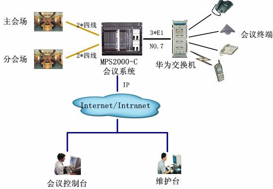 廊坊電力公司在2006年新配置了一套華為視頻會議系統(tǒng),為滿足國家電網(wǎng)公司對會議系統(tǒng) “一主兩備”的要求,公司急需一套電話會議系統(tǒng)作為視頻會議系統(tǒng)的應急備份。廊坊電力公司相關(guān)專家經(jīng)過多方認證,最終采用邁可行公司自主研發(fā)的MPS2000-C-II型交互式電話會議系統(tǒng)。