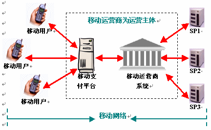 ·平臺運營商起到"插轉(zhuǎn)器"的作用,將銀行、SP、用戶等各利益群體之間錯綜復雜的關(guān)系簡單化,將多對多的關(guān)系變?yōu)槎鄬σ坏年P(guān)系,從而大大提高了商務(wù)運作的效率;