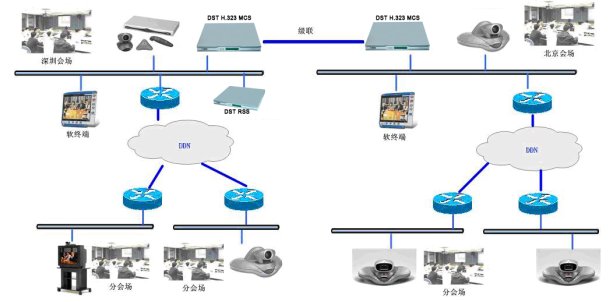 (1)性能穩(wěn)定,MTBF高于120,000小時(shí),完全滿足7×24小時(shí)連續(xù)運(yùn)行模式。此次擴(kuò)容,招商證券共采用了兩臺(tái)DST H.323 MCS,一臺(tái)放在深圳總部使用,另一臺(tái)放置在北京營(yíng)業(yè)部,兩臺(tái)MCU采用級(jí)聯(lián)組網(wǎng),網(wǎng)絡(luò)為4M線路。整套視頻會(huì)議系統(tǒng)支持130個(gè)會(huì)議室型終端接入,并支持若干軟終端接入,其中設(shè)在北京的MCU下轄25臺(tái)會(huì)議室型終端。由于MCU設(shè)備是整個(gè)視訊系統(tǒng)的核心,它的穩(wěn)定性與整個(gè)系統(tǒng)的穩(wěn)定性密切相連。因此,性能穩(wěn)定的DST