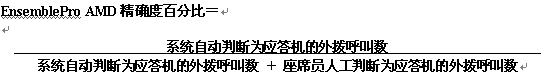 AMD精確度是如何計(jì)算的 ?這一點(diǎn)非常重要。EnsemblePro 的AMD精確度采用的是較為保守的算法-僅計(jì)算那些被應(yīng)答的電話。下面的等式是EnsemblePro對AMD精確度的定義: