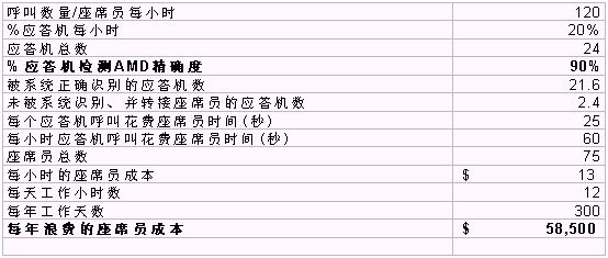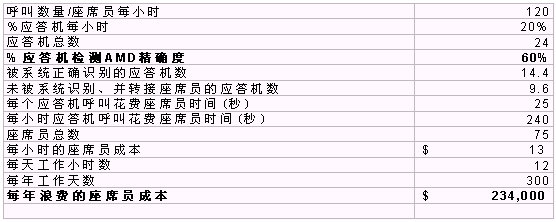 表1.0 計(jì)算了AMD精確度為60%時(shí)的成本(浪費(fèi)的座席員時(shí)間)。
