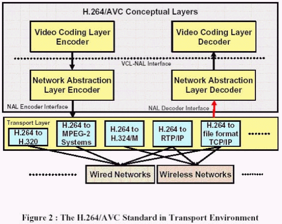 根據(jù)圖2,H.264/ AVC在不同的概念層上區(qū)分開來,視頻編碼層(VCL)和網(wǎng)絡抽象層(NAL)。VCL和NAL都是H.264/ AVC標準的一部份。VCL對視頻編碼信號進行了有效的說明。H.264/AVC的NAL定義了視頻編碼和外面世界之間的接口。它通過NAL單元來支持大部分基于包的網(wǎng)絡。在NAL解碼接口,它假設NAL單元已經(jīng)通過解碼命令被發(fā)送,數(shù)據(jù)包要么被正確接受,要么丟失,如果有效載荷里包括了錯誤的數(shù)據(jù)流,NAL單元的頭就會產(chǎn)生一個錯誤的標記。由于標記可以用于不同的目的,因此它并不作為標準的一部分。然而,它提供一個在整個網(wǎng)絡里提供錯誤指示信號的方法。此外,接口規(guī)范要求標準化主體有責任對不同傳送協(xié)議進行描述。NAL單元在不同傳輸系統(tǒng)的精確傳輸和加密,例如H.320,MPEG-2系統(tǒng)和RTP/IP,也同樣在h.264/AVC標準化的范疇以外。在標準里面正式定義了NAL解碼接口,然而,VCL和NAL之間的接口只是概念上的定義,主要是幫助描述和分開VCL和NAL的任務。