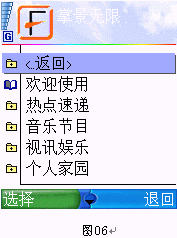 4.現(xiàn)在此軟件支持的媒體網(wǎng)站只有"掌景無限",估計(jì)以后隨著肥 6 用戶及在線視頻播放功能的普及,類似的網(wǎng)站會更多,打開"掌景無限",則系統(tǒng)會提示你所選擇的連接接入點(diǎn),