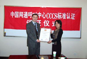 網(wǎng)通國(guó)際公司呼叫中心通過(guò)CCCS-2003標(biāo)準(zhǔn)認(rèn)證