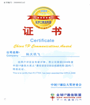 CTI論壇(ctiforum)10月12日消息: 近日,備受關(guān)注的CIPCA2009中國(guó)IP通信大獎(jiǎng)評(píng)選活動(dòng)近日落下帷幕,科大訊飛繼2008年之后,再次捧獲2009年中國(guó)最佳語(yǔ)音識(shí)別合成提供商獎(jiǎng)項(xiàng)。CIPCA中國(guó)IP通信大獎(jiǎng)是國(guó)內(nèi)下一代網(wǎng)絡(luò)通信行業(yè)最專業(yè)、權(quán)威的獎(jiǎng)項(xiàng),由全球IP通信聯(lián)盟發(fā)起,力主公正、公開、公平。全球IP通信聯(lián)盟是中國(guó)最大的下一代網(wǎng)絡(luò)/通信行業(yè)門戶媒體及行業(yè)聯(lián)盟,縱跨固網(wǎng)和移動(dòng),涵蓋UC統(tǒng)一通信、IP語(yǔ)音、視頻、呼叫中心、即時(shí)通信、無(wú)線通信、IPTV等下一代通信各領(lǐng)域以及相關(guān)的安全、測(cè)試、芯片等行業(yè)。中國(guó)IP通信大獎(jiǎng)通過(guò)網(wǎng)絡(luò)評(píng)比與專家測(cè)評(píng)相結(jié)合的形式選拔產(chǎn)生,旨在肯定業(yè)內(nèi)優(yōu)秀企業(yè)為行業(yè)發(fā)展所作的努力與貢獻(xiàn),推動(dòng)市場(chǎng)的良性發(fā)展,同時(shí)為行業(yè)用戶提供一個(gè)權(quán)威的參考平臺(tái)。