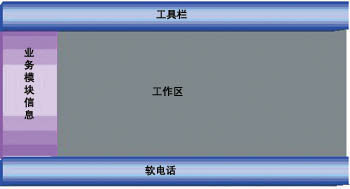 軟電話提供標準的呼叫控制功能,如座席的登錄、注銷等。業(yè)務模塊信息根據(jù)該座席的技能設置顯示該座席能夠使用的座席業(yè)務模塊,工作區(qū)是座席使用業(yè)務模塊的區(qū)域,業(yè)務模塊的調(diào)入可以是系統(tǒng)根據(jù)自動服務傳遞的參數(shù)自動彈出,也可以是座席人員手工選擇相應的業(yè)務操作。同時,業(yè)務模塊通過標準的接口和軟電話模塊進行通信,取得或者設置系統(tǒng)的呼叫參數(shù)或操作,包括提取系統(tǒng)主被叫號碼、用戶按鍵等。通過工具欄提供系統(tǒng)的菜單、快捷鍵、快捷按鈕的使用。通過這種方式,系統(tǒng)可以隨時增加、修改座席的業(yè)務模塊,而無須修改整個座席端,有利于系統(tǒng)業(yè)務的分步實施,大大縮短了系統(tǒng)的整個建設周期。