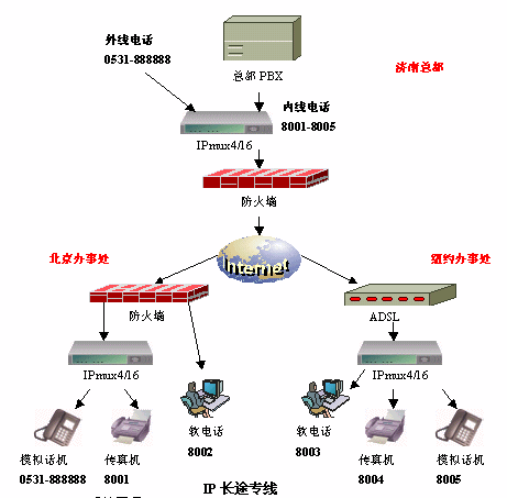 IP長途專線系統(tǒng),完全針對政府、企業(yè)等的駐外辦事機構與總部之間的密切聯(lián)系而設計,使辦事處輕松擁有來自總部的長途電話專線,令溝通更加迅捷,而且完全免除長途話費的困擾,安裝和使用都極其簡單,無需對原有電話設備進行任何改造。