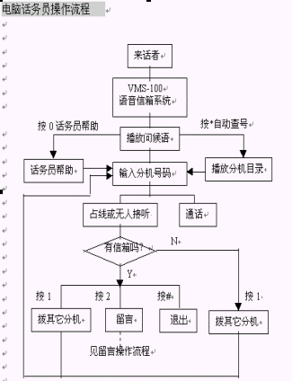 2. 在使用了電腦話務(wù)員忙轉(zhuǎn)接功能的情況下,當(dāng)分機(jī)占線時(shí)如果您選擇了留言,系統(tǒng)便將您的電話接通至相應(yīng)的留言信箱;當(dāng)分機(jī)無(wú)人接聽(tīng)時(shí)交換機(jī)啟動(dòng)無(wú)應(yīng)答呼叫轉(zhuǎn)移功能,將您的電話重新接回到VMS-100
