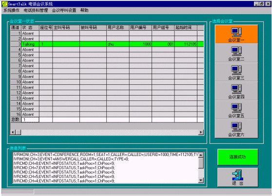 為了突破傳統(tǒng)電話會(huì)議系統(tǒng)的功能局限性,降低采用可視電話會(huì)議系統(tǒng)的高昻成本,本公司采用先進(jìn)的CTI技術(shù)和設(shè)備,推出了SmarTalk Conference電話會(huì)議系統(tǒng),具有超強(qiáng)的會(huì)議能力(同時(shí)可建立多個(gè)會(huì)議,每個(gè)會(huì)議最多同時(shí)可以設(shè)60個(gè)全功能會(huì)議座席,會(huì)議語音效果清晰流暢),并且利用計(jì)算機(jī)控制技術(shù)使操作變得簡(jiǎn)捷、方便,得到用戶一致的好評(píng)。同時(shí)用戶可以使用普通電話終端(包括固定電話和移動(dòng)電話)進(jìn)入會(huì)議,使用本系統(tǒng)的企業(yè)用戶不需要專用的中心會(huì)議室,參加會(huì)議的人員可以分布在任一地點(diǎn),極大地方便了會(huì)議的召開。