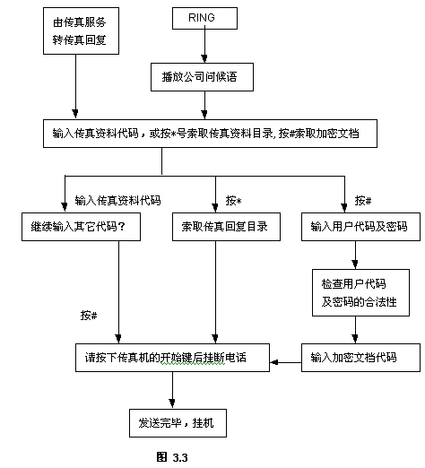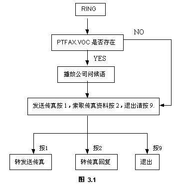其中PTFAX.VOC存在當前工作路徑,如果存在,則播放公司問候語,接著播放下一句語音提示;如果該文件不存在,則系統(tǒng)直接播放VFGT.VOC的內容,用戶可根據(jù)實際需求而定。