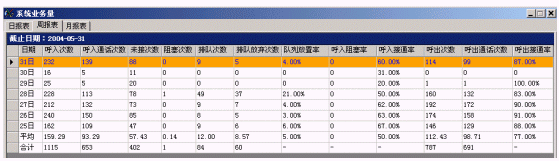 主要考察系統(tǒng)分項業(yè)務(wù)指標(biāo),如中繼線、分機(jī)、座席員、業(yè)務(wù)組等,便于了解系統(tǒng)運行狀況