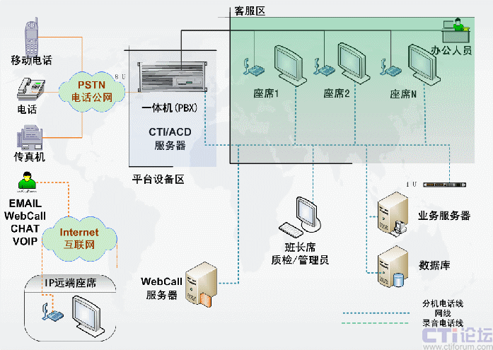 包含CTI服務(wù)器、IVR/FAX服務(wù)器、錄音監(jiān)控 系統(tǒng)、報(bào)表統(tǒng)計(jì)系統(tǒng),CRM客戶管理等。