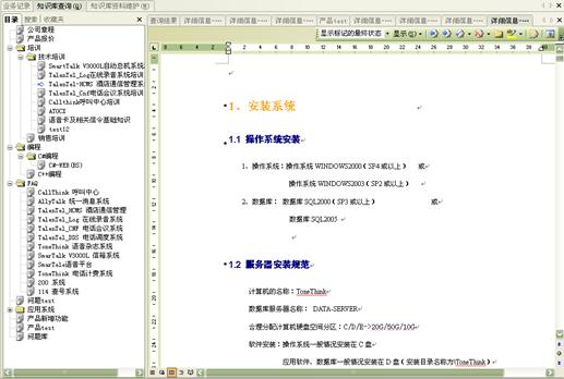 業(yè)務(wù)知識(shí)庫(kù)系統(tǒng)包括大量的信息,它可以幫助坐席人員精確、及時(shí)地得到相關(guān)知識(shí)的詳細(xì)信息。坐席人員可以利用業(yè)務(wù)知識(shí)庫(kù)系統(tǒng)提供的多種查詢手段,進(jìn)行各種信息的查詢。管理人員還可以通過知識(shí)庫(kù)訪問量統(tǒng)計(jì)來了解座席員訪問知識(shí)庫(kù)的情況,并且可以通過知識(shí)庫(kù)資料維護(hù)來靈活定制知識(shí)庫(kù)的內(nèi)容。