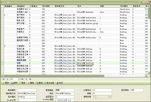 在CRM系統(tǒng)中還有一些系統(tǒng)的擴(kuò)展功能,包括動(dòng)態(tài)菜單,自定義用戶資料、工單資料、產(chǎn)品信息,網(wǎng)頁(yè)嵌入,EXE嵌入,這些擴(kuò)展功能方便用戶根據(jù)自己的需要個(gè)性化的設(shè)定CRM系統(tǒng),例如我們可以通過菜單管理來定制需要顯示的菜單內(nèi)容,菜單名稱以及可以根據(jù)不同的角色設(shè)置某個(gè)菜單項(xiàng)是否可見,如圖26所示