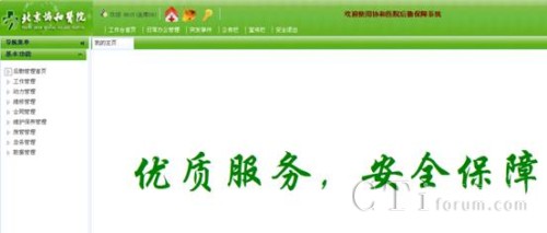 登錄后的后勤保障管理系統(tǒng)主頁(yè)面,左側(cè)為系統(tǒng)功能樹(shù)形結(jié)構(gòu)圖。