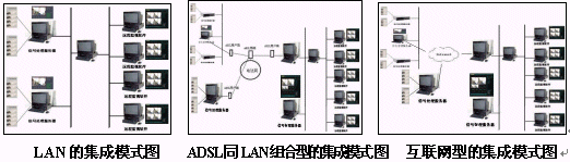 本系統(tǒng)的規(guī)劃設(shè)計出發(fā)點是以網(wǎng)絡為核心的,但對網(wǎng)絡的拓撲結(jié)構(gòu)沒做任何的限制,同時在傳輸?shù)慕橘|(zhì)上也沒有任何的附加條件。本系統(tǒng)采用了國際標準的通信協(xié)議HTTP協(xié)議,實際上,本系統(tǒng)在規(guī)劃初衷的典型應用模型中就規(guī)劃了三種不同應用的拓撲結(jié)構(gòu)。一種是局域網(wǎng)的拓撲結(jié)構(gòu),另一種是ADSL同局域網(wǎng)相結(jié)合的拓撲結(jié)構(gòu),第三種是互聯(lián)網(wǎng)的拓撲結(jié)構(gòu)。