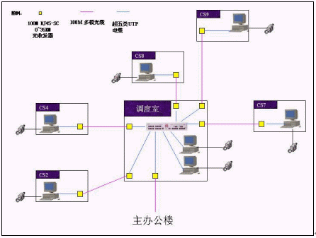 下例示圖是本產(chǎn)品的應用實例。示圖中CS**和調(diào)度室均為現(xiàn)場操作人員工作的控制室。通過調(diào)度室同廠辦公樓實現(xiàn)網(wǎng)絡之間的互聯(lián)。每一臺信號處理服務器帶4到8個攝像頭,主辦公樓內(nèi)在現(xiàn)有的計算機上安裝了本公司的遠程監(jiān)視軟件,實現(xiàn)了管理人員及廠領(lǐng)導的遠程監(jiān)視的功能。