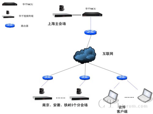 在系統(tǒng)的架設(shè)上,華平為上航特種車(chē)公司在雙線(xiàn)托管機(jī)房架設(shè)了一臺(tái)MCU服務(wù)器,用雙線(xiàn)機(jī)制解決電信、網(wǎng)通的網(wǎng)絡(luò)瓶頸問(wèn)題,同時(shí)實(shí)現(xiàn)視音頻的合成和轉(zhuǎn)發(fā);在上海、南京、安徽、鐵嶺4個(gè)會(huì)議室各部署一臺(tái)標(biāo)清硬件終端,達(dá)到標(biāo)清品質(zhì)的視頻通訊應(yīng)用;同時(shí)針對(duì)移動(dòng)參會(huì)用戶(hù),華平為其配置了4個(gè)點(diǎn)的軟件客戶(hù)端,使上航特種車(chē)公司相關(guān)領(lǐng)導(dǎo)和員工在出差情況下也可以通過(guò)筆記本電腦參會(huì)。此系統(tǒng)設(shè)計(jì)不僅具備良好的視音頻通訊效果,同時(shí)還具備強(qiáng)大的數(shù)據(jù)輔助功能,可滿(mǎn)足會(huì)議、培訓(xùn)甚至是遠(yuǎn)程協(xié)作的應(yīng)用需求。